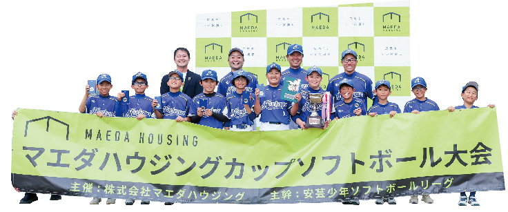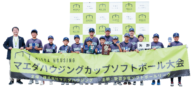 マエダハウジングは、広島市や東広島市・福山市を中心に住宅のリフォーム・新築、不動産を8店舗で行っている会社です。事業を通じて地域に貢献するために何ができるかを考える中で、広島の子どもたちのスポーツを応援するという夢を見つけました。さまざまなスポーツでマエダハウジングカップを開催し、ソフトボール大会は2019年にスタート。今年で第6回です。